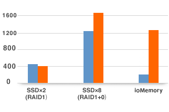 ※ioMemoryはエクスプレスG2シリーズ Fujitsu PRIMERGY RX200 S8モデルのモデルの Xeon E5-2650v2 2CPUにて計測