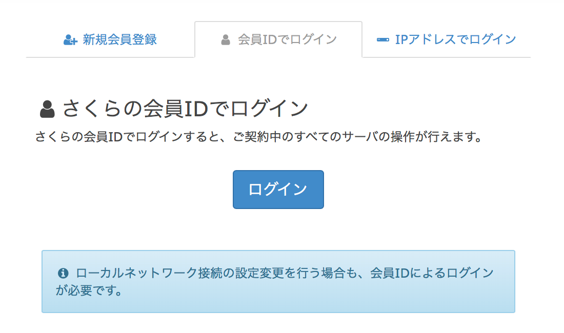 1.さくらのVPSのコントロールパネルへ「会員ID」と「会員メニューパスワード」を入力してログインします。