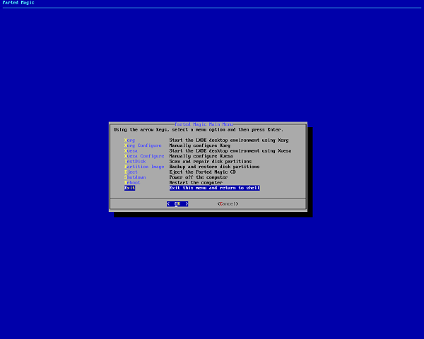 起動したら「Exit」を選択してメニュー画面を終了します。