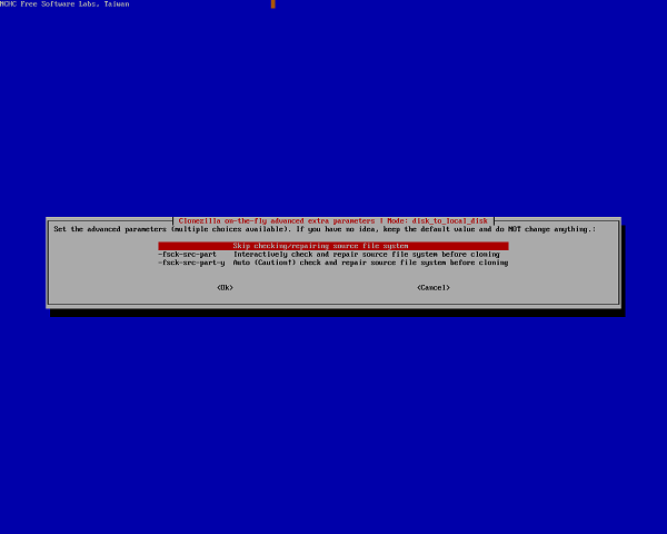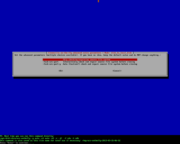 「Skip checking/repairing source file system」を選択し Enterキー を押します。