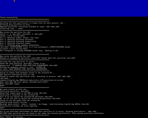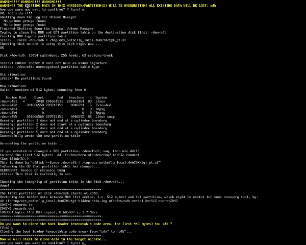 「Now we wil start to clone data to the target machine…」と表示されたら内容を確認して「y」と入力し Enterキー を押します。