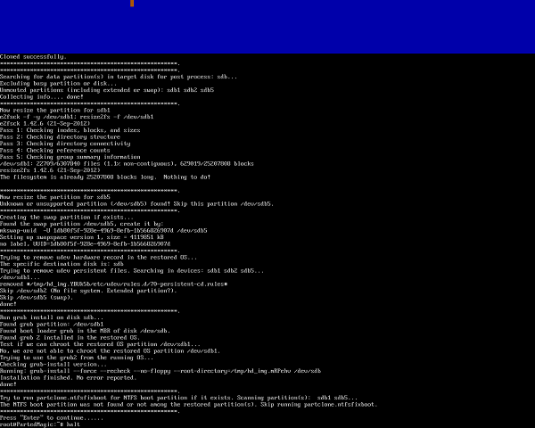 コンソールに戻ってきたら「halt」と入力し、Enterキー を押してください。