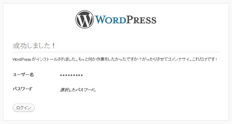 以下の画面が表示されれば、「STEP2. WordPressのインストール」の完了です。