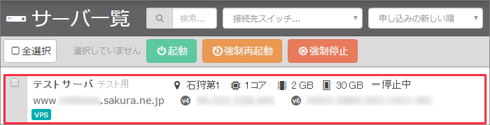 VPSコントロールパネルに『IPアドレス』でログインした場合、該当のサーバ操作のみが行えます。