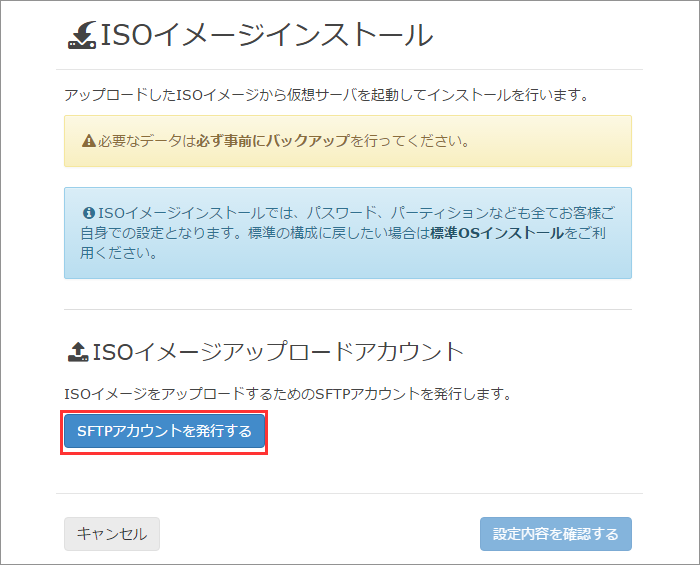 また、データの喪失・誤操作によって発生した不具合について、さくらインターネットでは責任を負いかねます。 - アップロードできるISOイメージは、1イメージのみです。