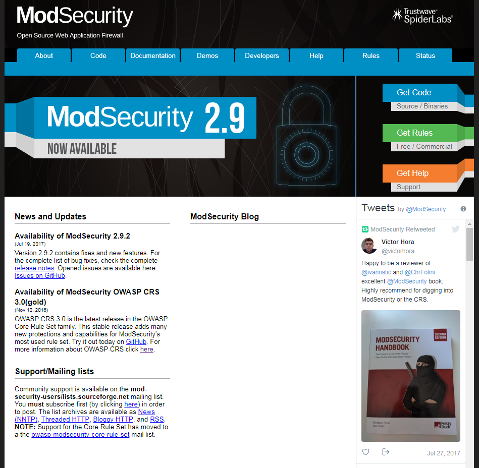 活発な開発が続けられており、採用実績も多い。DebianやUbuntu、Red Hat Enterprise Linux(RHEL)およびCentOSといったその互換OSなどでは標準でパッケージが提供されており、導入も容易だ。検出用のルールセットはOWASP ModSecurity Core Rule Set(CRS)としてメンテナンスされており、Apache License 2で提供されている。