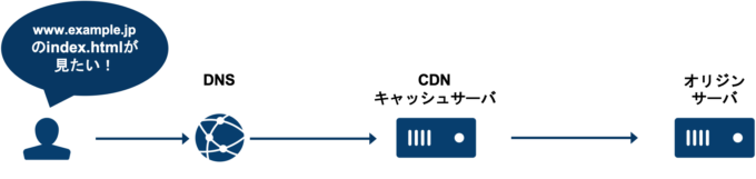 CDNはざっくり言うと、DNS、キャッシュサーバ、オリジンサーバで成り立っています。
