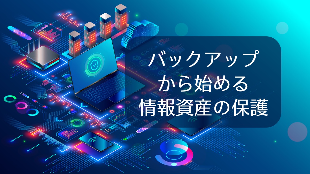 情報資産の保護の基本は、データバックアップです。バックアップは、サーバー、ストレージ、PCといったコンピューターシステムに保存されているデータを保護し、その情報資産の喪失リスクを回避する仕組みと運用です。また、一度失われてしまうと回復困難な情報資産喪失のリスクを回避するためには、適切なバックアップとそのリストアの計画と運用が必要です。データバックアップにより、万が一のデータ喪失やアクセス障害といった事故が発生した場合でも、データやコンピューターシステムの復旧が可能になり、事業の継続を可能にします。