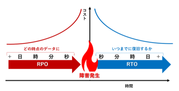 障害発生の直前に保存したデータを今すぐに復旧(RPO/RTOほぼゼロで)させることがベストと思われるかもしれませんが、RPO/RTOはバックアップ頻度や復旧方法により異なり、一般的にタイトな要件はコストに比例しますので、保護対象のデータの種類や属性に合わせた設計が必要です。