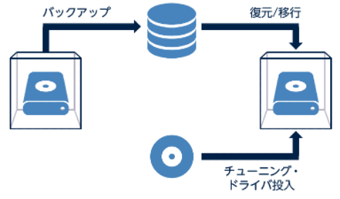 - ハードウェア故障やリプレースの場合でもイメージデータでシステム復旧