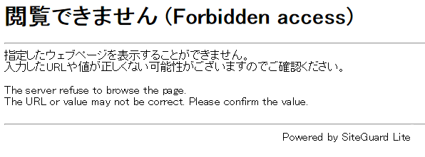なお、Apacheの設定で、"ErrorDocument 403"を指定している場合は、ErrorDocumentで指定したメッセージが表示されます。