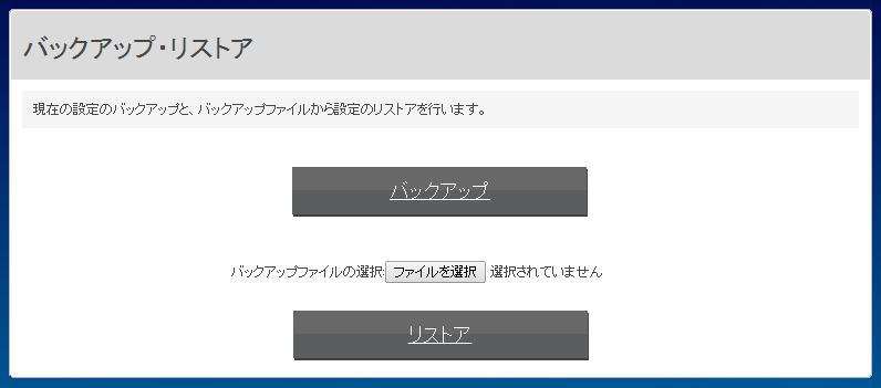 リストア時は、取得したバックアップファイルを選択して、[リストア]を押すだけです。