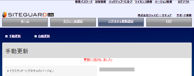 シグネチャの更新に成功すると、「更新に成功しました!」のメッセージが表示されます。