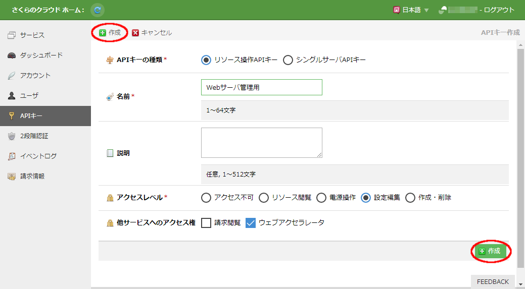 APIキーの新規作成・編集¶