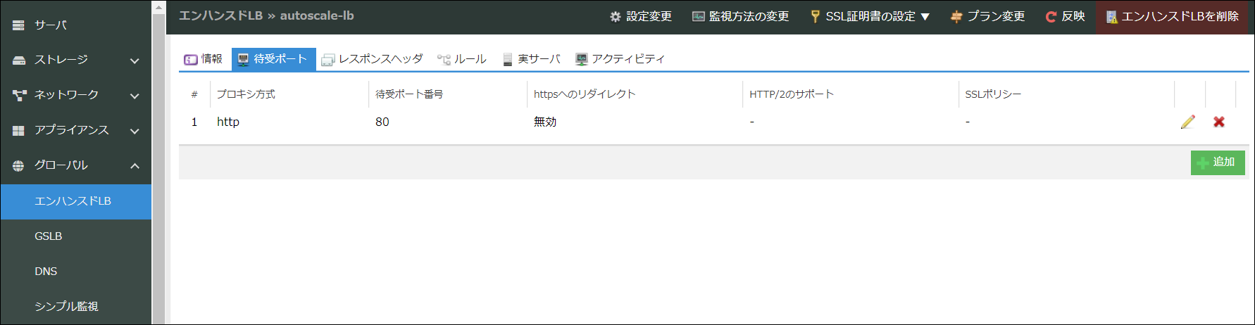 エンハンスドロードバランサを作成して、実サーバ(オートスケールの対象となるサーバ)を追加します。