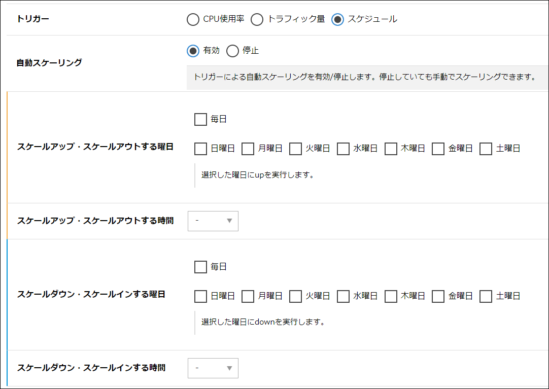 オートスケールの実行を任意の時間帯で動作するように登録が可能です。