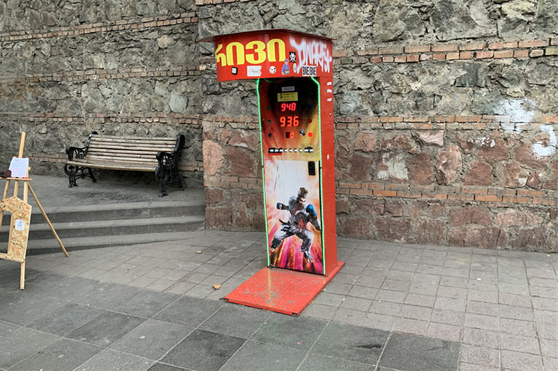 でも、この国(ジョージア)ではゲームセンターに行かなくても、街中のあちこちでパンチングマシーンを遊ぶことができます。