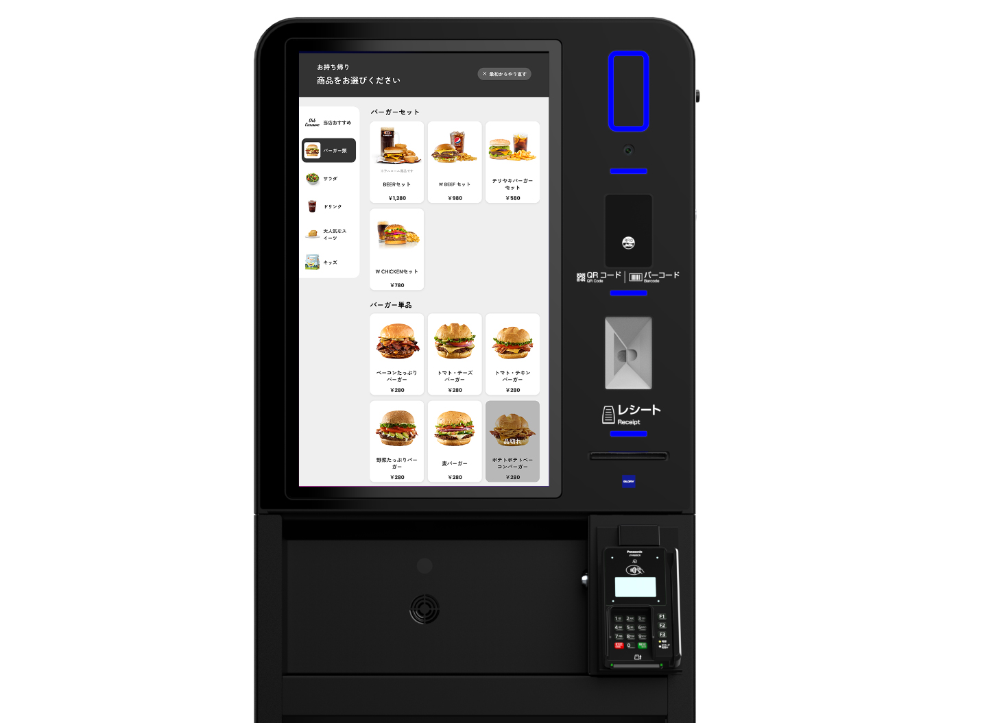 O:der Kioskの写真。通貨処理機のリーディングカンパニー・グローリー株式会社と連携。店内に設置した同端末から注文と決済をおこなえる