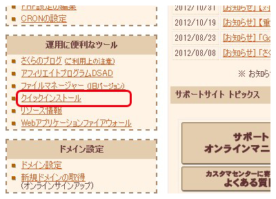 1サーバコントロールパネルのトップページを表示します。「クイックインストール」をクリックします。