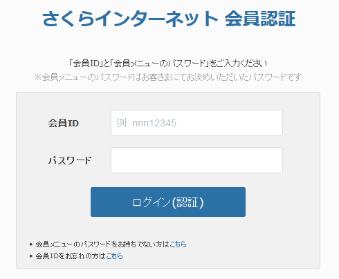 VPSコントロールパネルに『 会員ID 』と『 会員メニューパスワード 』を入力し、ログインします。