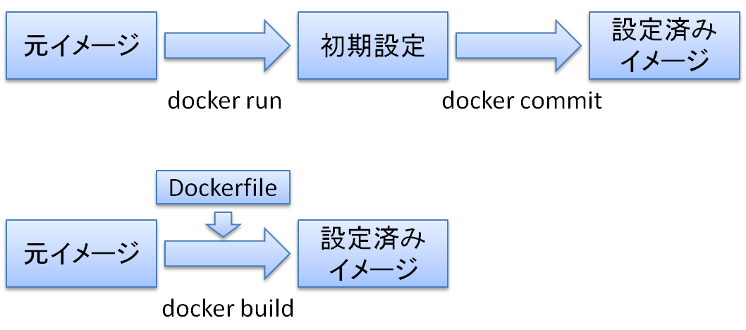 初期設定されたイメージの作成方法には、先ほど起動したbash経由で行いcommitしてイメージ化するという方法がありますが、それとは別にDockerfileという定義ファイルを使ってDockerイメージを作成する方法もあります。