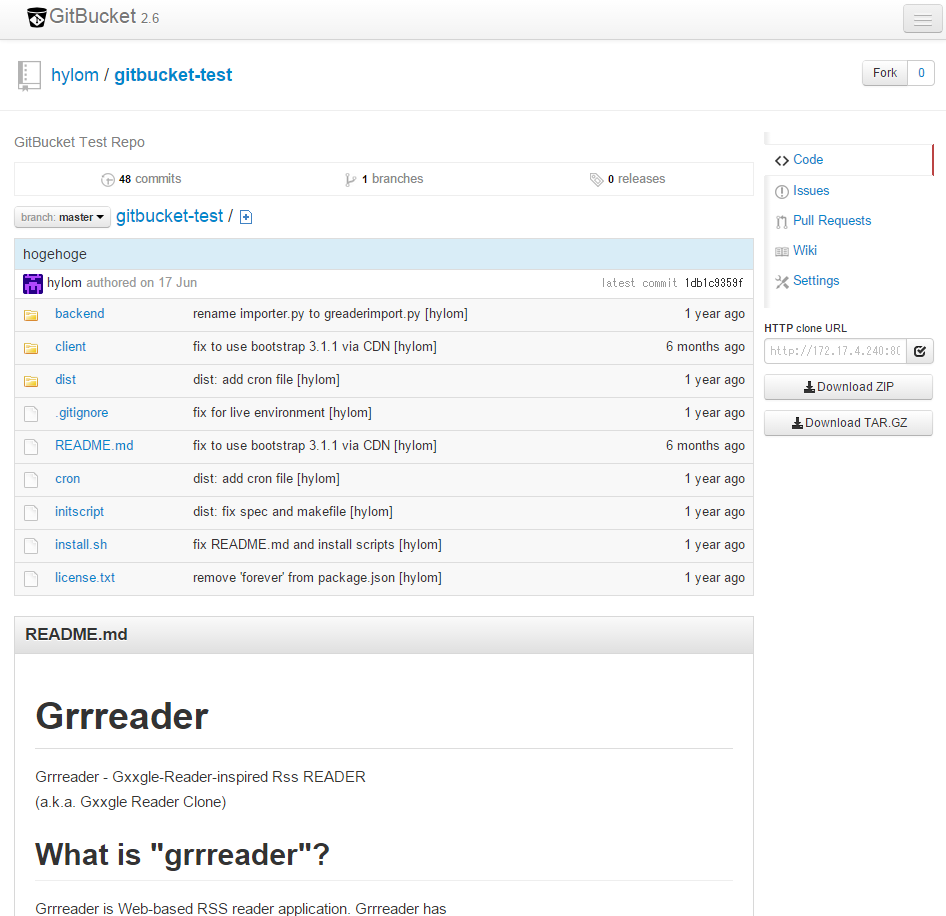 GitBucketは「GitHubクローン」をうたっており、ユーザーインターフェイスもGitHubにそっくりだ。リポジトリブラウザやフォーク機能、イシュートラッカー、Wikiなど、GitHubの主要機能のほとんどが実装されている(図5)。
