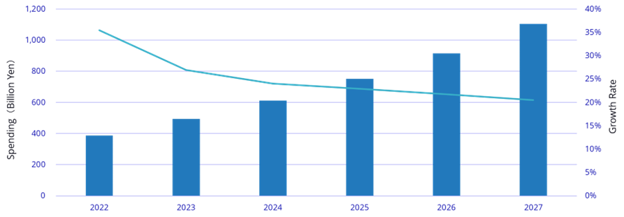 またIDC Japanの調査結果によると、日本のAIシステム市場規模は、2022年に3,883億6,700万円(前年比35.5%増)となっており、2027年には1兆1,034億7,700万円まで拡大すると予測されています。