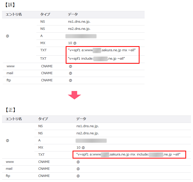 "v=spf1 a:www***.sakura.ne.jp mx ~all"
