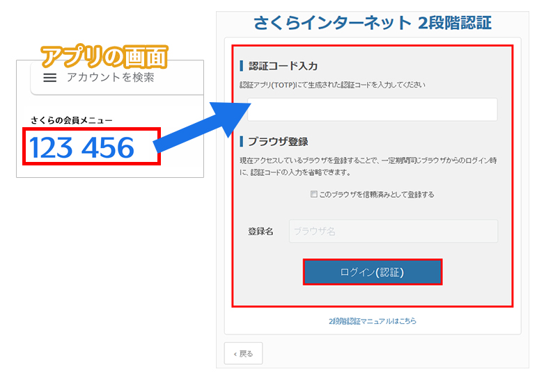 3認証コード入力 / ブラウザ登録画面が表示されます。