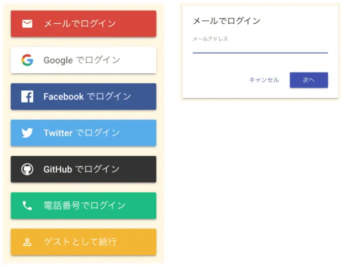 Firebase UIを使うと、Twitter(現:X)、 Facebook、 Googleアカウントを使用したSNSログインがほぼコードレスですぐに実現可能です。もちろん従来型のメールアドレス+パスワードも可能です。本記事執筆時点では、エミュレータ環境では、メールログインと、ゲストログインでしかログインできませんでした。