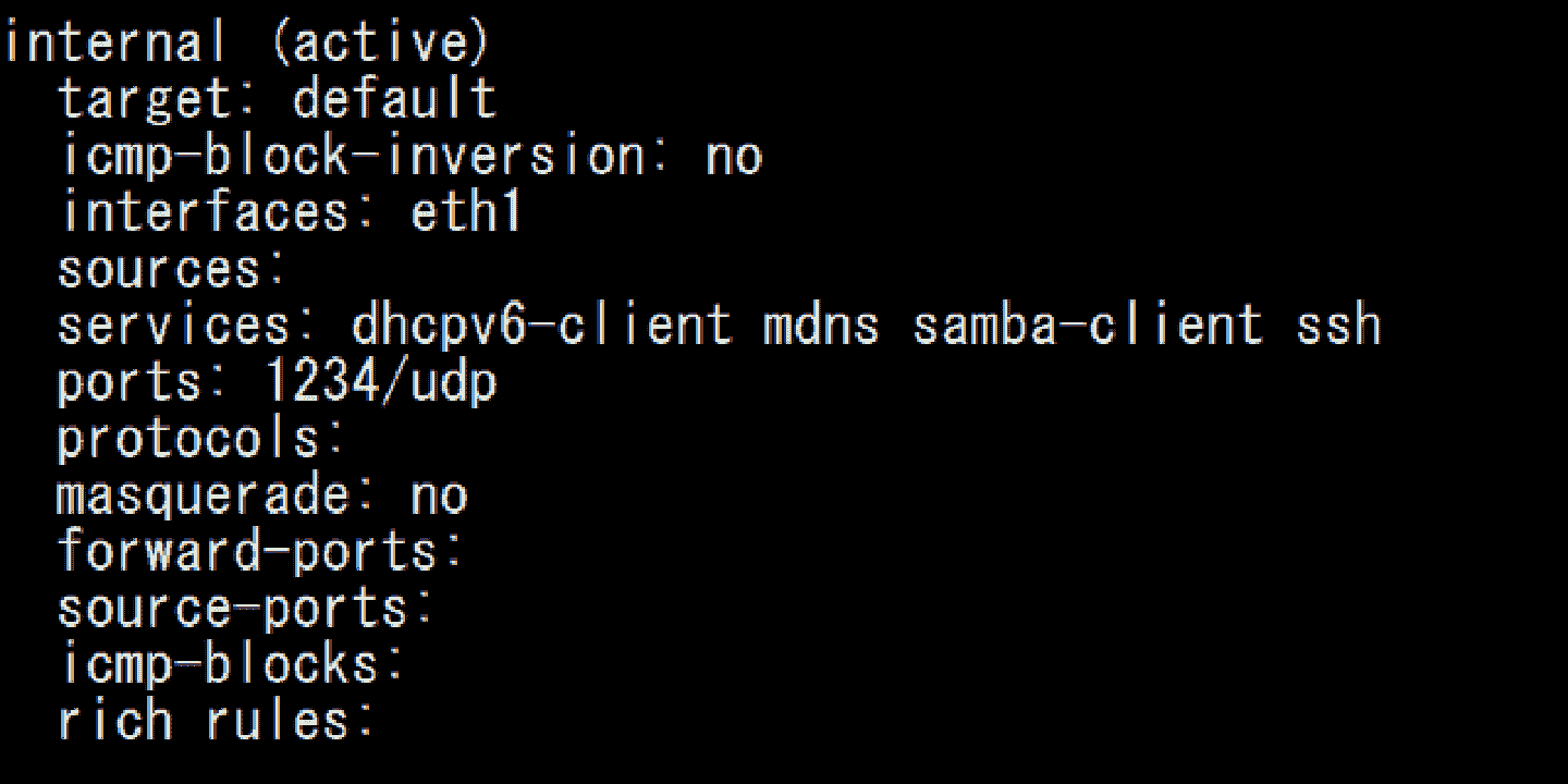 [root@localhost /]# firewall-cmd --zone=internal --add-port=1234/udp --permanent