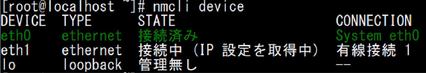 [root@localhost /]# nmcli connection add type ethernet ifname eth1 con-name eth1