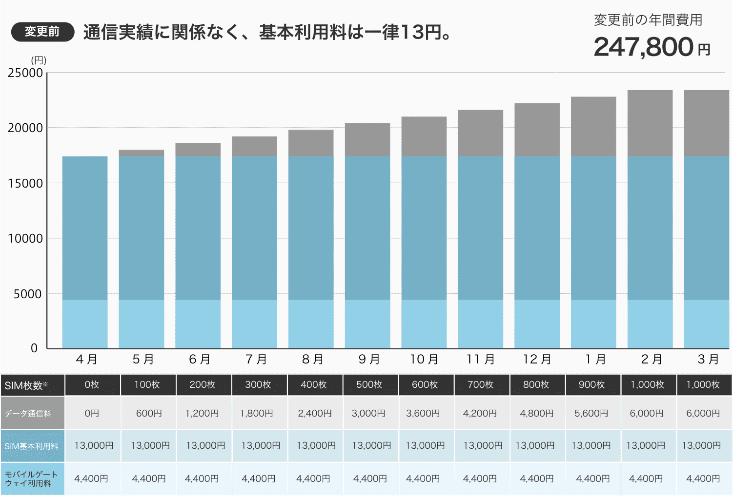 SIM基本料金は13円/月のシンプルな料金体系です。