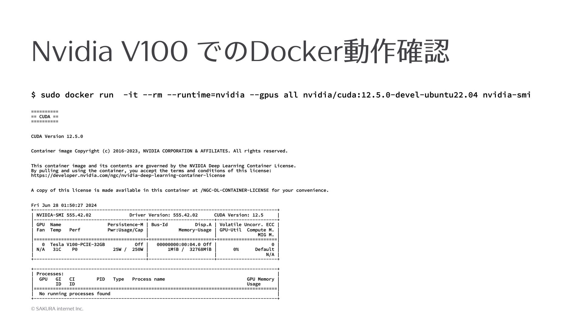 Nvidia V100でのDocker動作確認