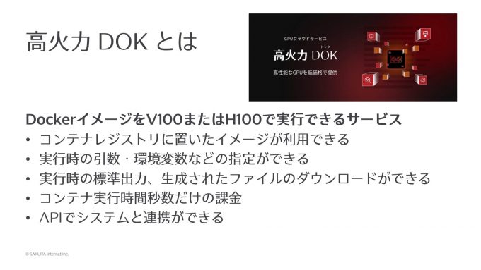 さくらインターネットが6月にリリースした「高火力 DOK」というサービスの説明をします。