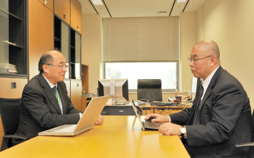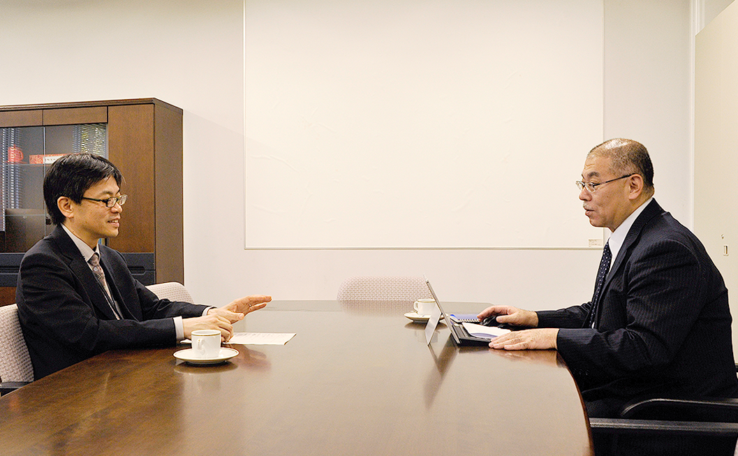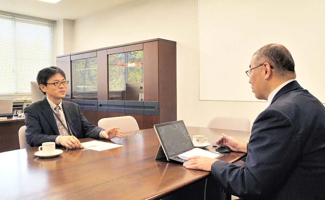 (上部写真:広島大学情報メディア教育研究センター長・西村浩二教授(左)に取材するさくらインターネット・滝島(右))