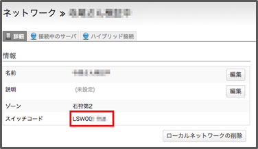 [ネットワーク] - ローカルネットワーク内の対象スイッチを選び、[ゾーン]と[スイッチコード] をご記入ください。