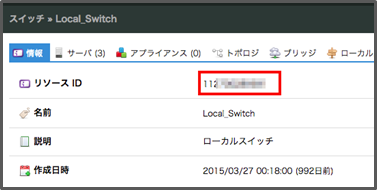 さくらのクラウドコントロールパネルにアクセスし、[IaaS] - [スイッチ] - 対象スイッチを選択し、[リソースID] (12桁数字)を記入ください。