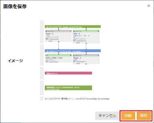 表示されたイメージ画像を確認し、「印刷」または「保存」ボタンをクリックします。