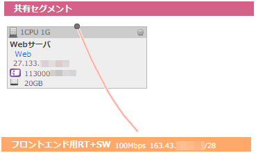 スイッチ/ネットワーク接続されたサーバやアプライアンスは四角い箱で表示されます。箱の上または下に表示される黒い丸印はNICやインターフェースを表し、それぞれの接続先となるスイッチやネットワークに線で結ばれます。