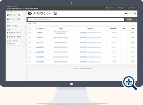 事業者様用コントロールパネルを提供いたしますので、エンドユーザ数が数百、数千を越えた場合に発生する、大量のアカウント管理から解放されます。