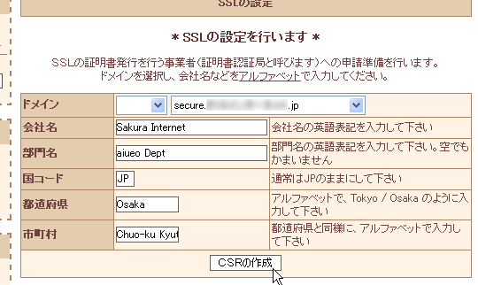 申請する認証機関によってはCSRに含む文字列に制限があります。詳しくはご利用予定の事業者様へお問い合わせください。