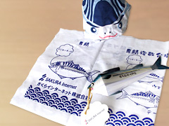 - A. 「サーバ」とかけたダジャレから生まれた鯖のノベルティは、「鯖手ぬぐい」「鯖ラムネ」などがあります。一般販売は行っていませんが、新サービスのリリース時やセミナー・イベントなどの際にプレゼントしていますので、是非ご注目ください。