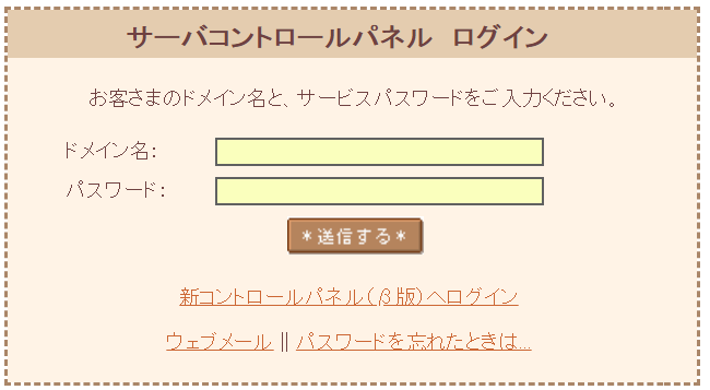 サーバコントロールパネルへログインします。