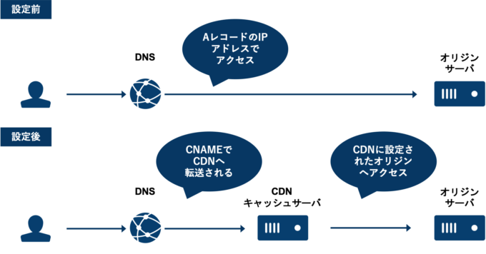 DNSではサイトドメインの向き先をオリジンからCDNへ向けるだけですので、CDN側でオリジンのIPアドレスやFQDNを設定する必要があることがわかります。