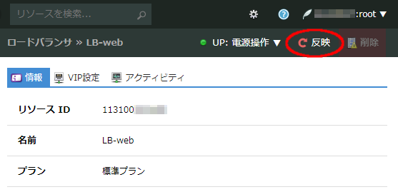 ロードバランサ、VPCルータでは、コントロールパネルでの設定画面が複数個所に渡るため、設定変更結果をアプライアンス側に「反映」する操作が必要となります。設定変更後は必ず「反映」ボタンをクリックしてください。