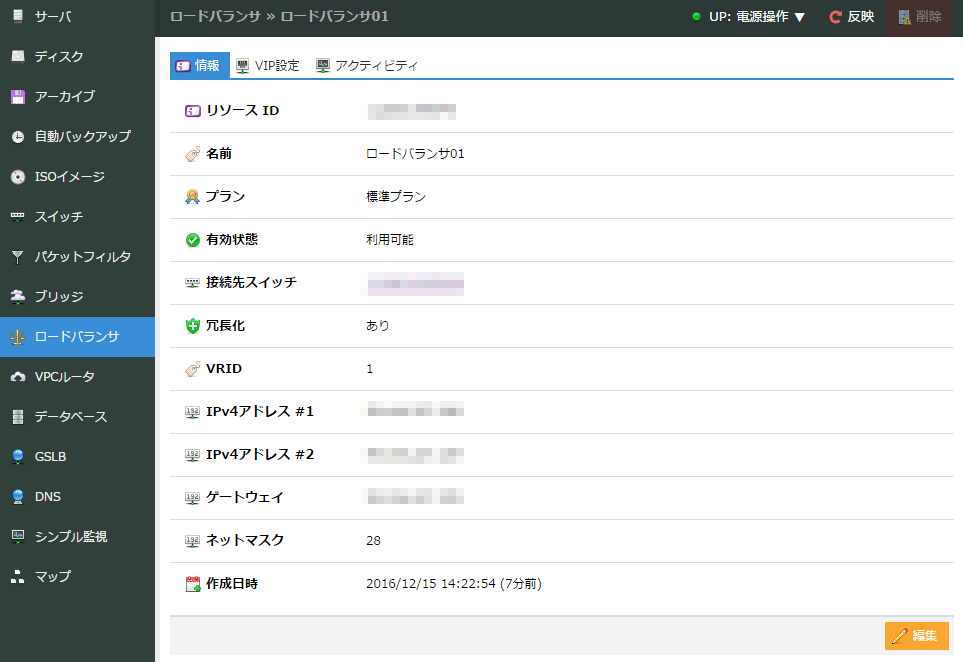 ※1: コントロールパネルのロードバランサ情報画面では「IPv4アドレス #1」と表記