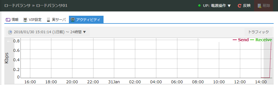 これまで行ってきた設定はロードバランサ側に即時反映されない仕様となっています。設定の追加や変更を行った後は、必ず「反映」ボタンをクリックしてください。「反映」ボタン押下後はすぐに設定が有効となります。