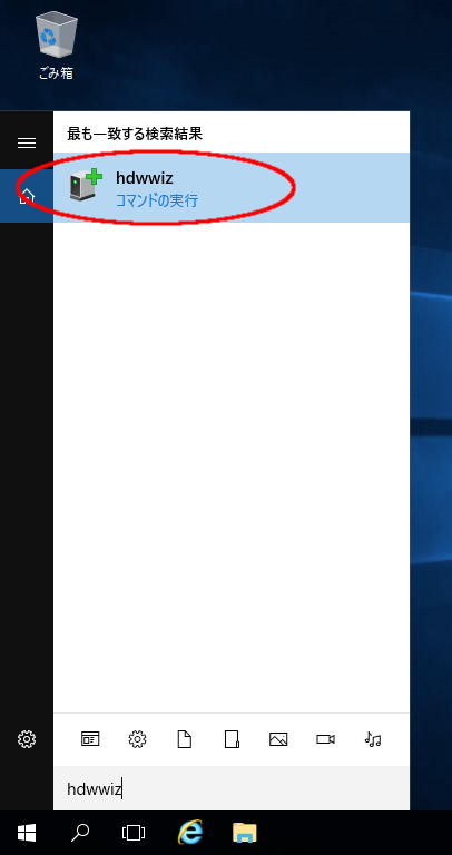 最初にループバックアダプタを追加します。「hdwwiz」を検索するなどで「ハードウェアの追加ウィザード」を起動します。