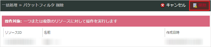 - パケットフィルタ一覧から削除したいパケットフィルタのチェックボックスにチェックを入れ 、『 削除 』をクリックします。